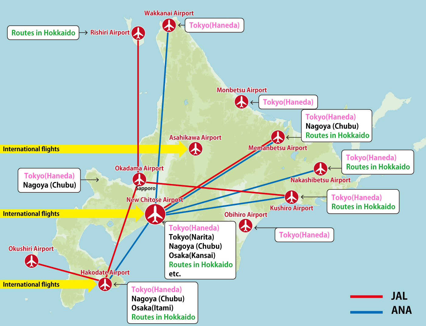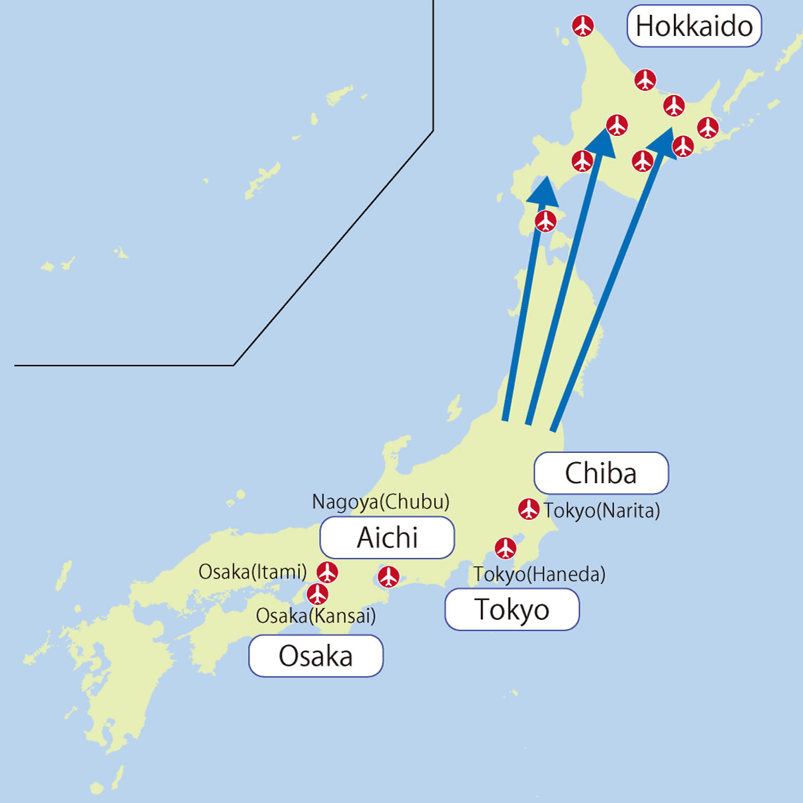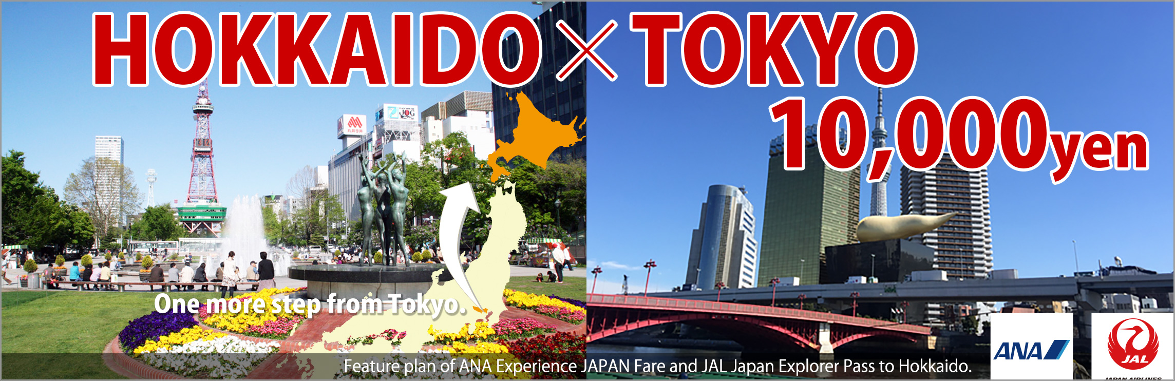 Sapporo(New Chitose)(¥42,210) Hakodate(¥39,710) Asahikawa(¥46,110) Memanbetsu(¥49,710) |