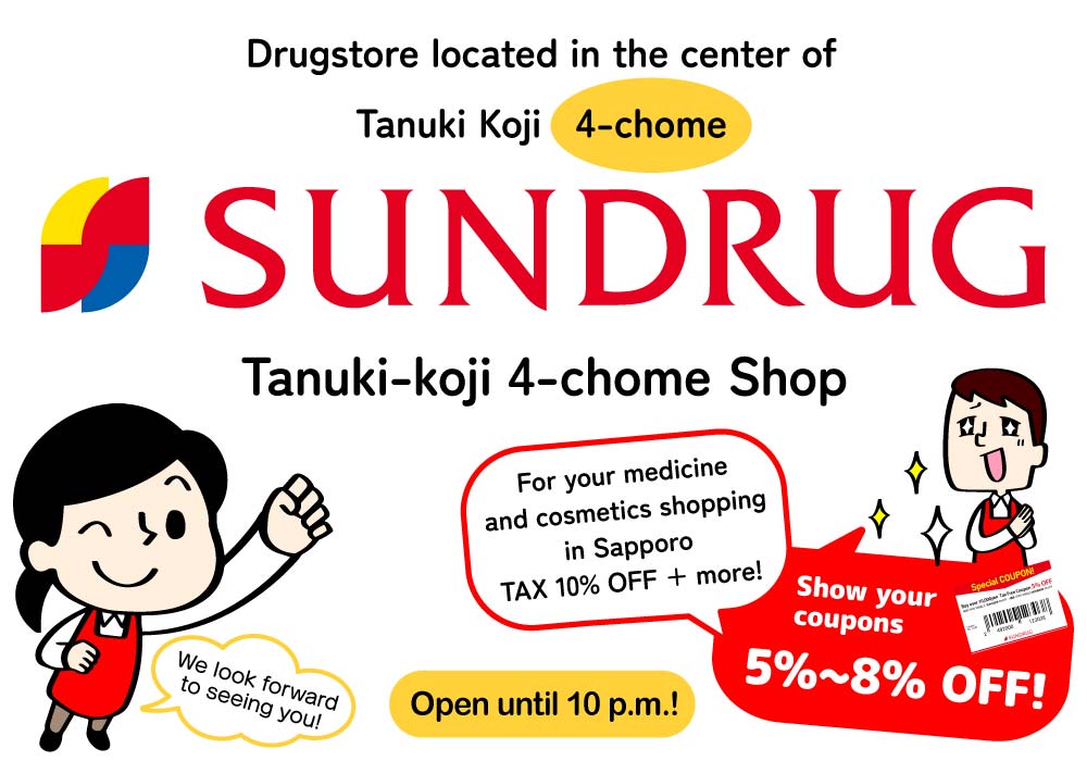 Sundrug is a drugstore chain with over 1,000 stores nationwide and more than 70 locations in Hokkaido.