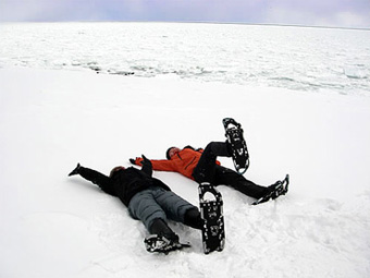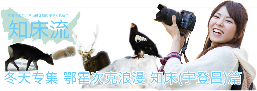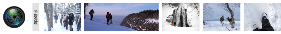 游览知床不能靠机械,而是结合自己的体力步行,享受身处自然感觉。在自己的靴子上装上被称为snowshoe的洋式雪鞋,然后进入雪原。走累了,就大字平躺在雪床上。嗓子干了就嚼些雪。目的地是五湖? Furepe瀑布?